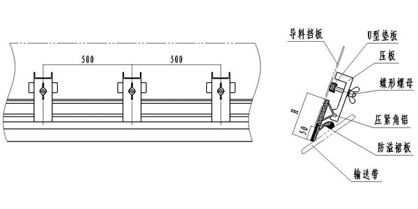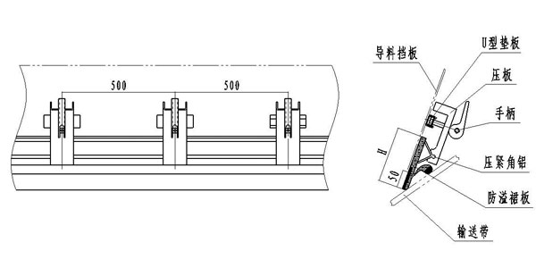 2、密封裙板高度可根據(jù)導料槽的實際尺寸適當調(diào)整。